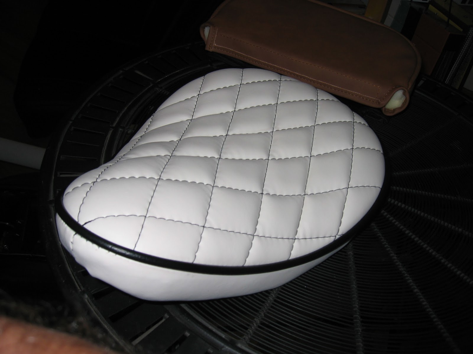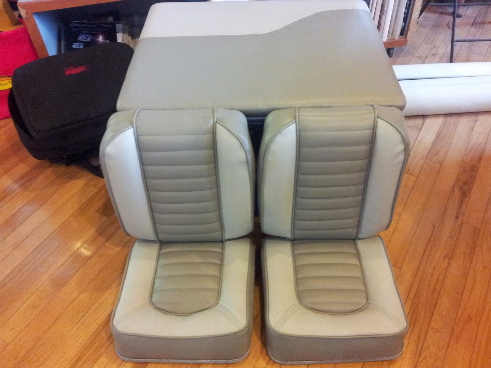 We upholstered this boat couch in a soft leather feel vinyl very comfy.